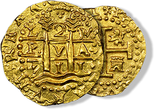 Includes pieces of eight, gold escudos, and other Spanish colonial coins.